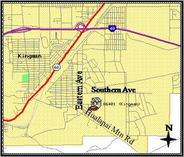 From I-40/Hwy 93 take the Beale Street Exit, then east to Andy Devine Avenue, a.k.a. Route 66. to Hualapai Mountain Road (Big-O-Tires and Dam Bar on the corners). Proceed east on Hualapai Mountain Road to Eastern Avenue. then turn north on Eastern Avenue to Karen Avenue and turn right at the fire station. Continue to the end of Karen Avenue. The home sits at the corner of Karen Avenue and Wildflower Street, just south of Courtney Avenue.